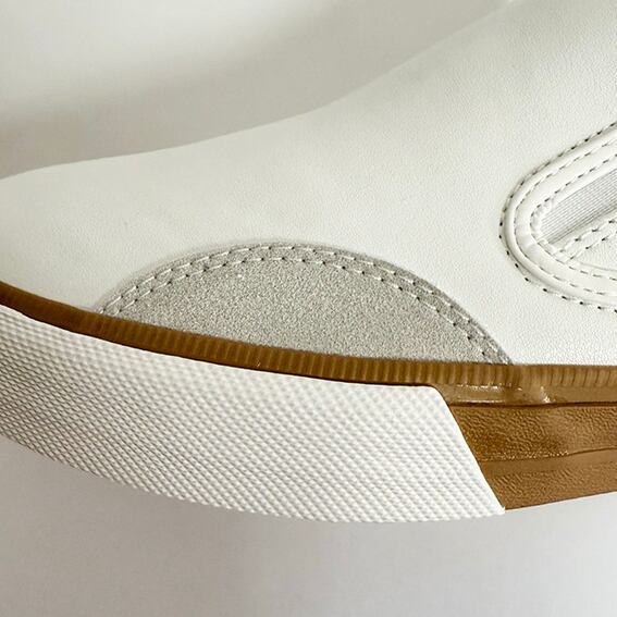 2026SSの新作『SEESAW AL』は、リサイクルレザーを使用したスリッポンスニーカーです。着脱が簡単で、ストレスフリーな履き心地が魅力です。独自のインソールが足全体をしっかりサポートし、快適な歩行を実現しました。SEESAWは、シンプルながらもユニークなデザインに由来し、足を軽やかに包み込む仕上がりとなっています。アウトソールもリサイクルラバーを使用してます。