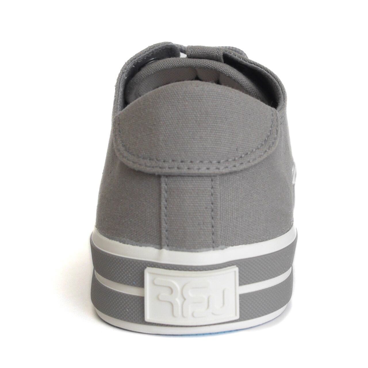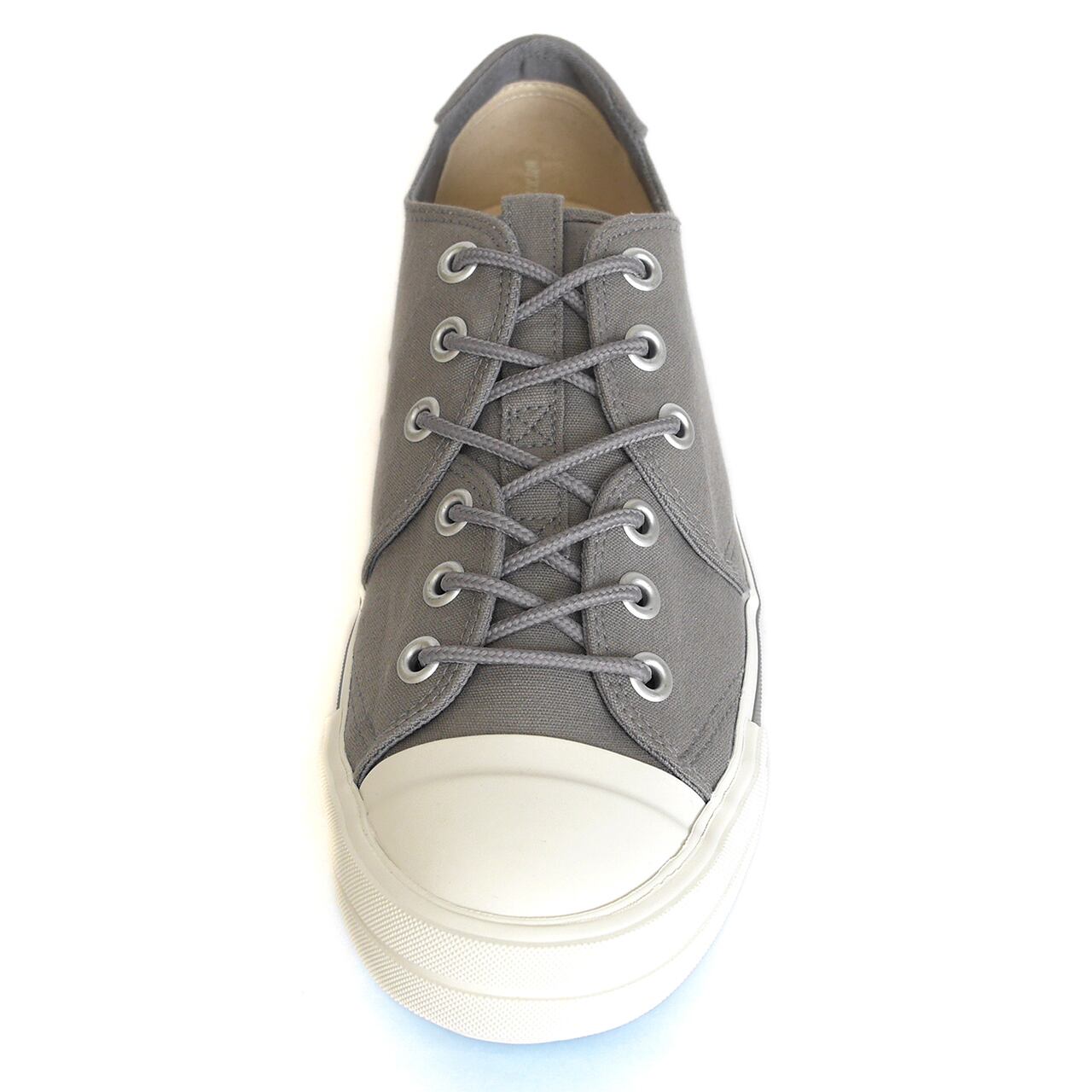 2024年春夏の新色としてGREYが登場します。今までのSTANDARDシリーズでは人気色でありましたが、STD2でも今後定番として展開する予定です。このカラーはどんなスタイルにも合わせやすく、カジュアルなスタイリングにも、エレガントな着こなしにもマッチします。シンプルでありながら、個性的なデザインが特徴のキャンバススニーカー『SANDWICH』シリーズの新定番として2023年秋冬から『SANDWICH-LO STD2』が新登場しました。SANDWICHとはアッパーのパターンが分かれて構成されており、足全体を包み込む様にホールドしてくれるのが特徴のRFWを代表するモデル。包み込むイメージからサンドイッチという名前が付けられております。アッパー両サイドの羽根が2枚のパーツに分かれている事で、履き口も開きやすく着脱もスムーズです。またソールに配置した2本の太いグレーのラインもポイントです。アウトソールはRFWのブランドカラーのシアンブルー(水色)になります。
