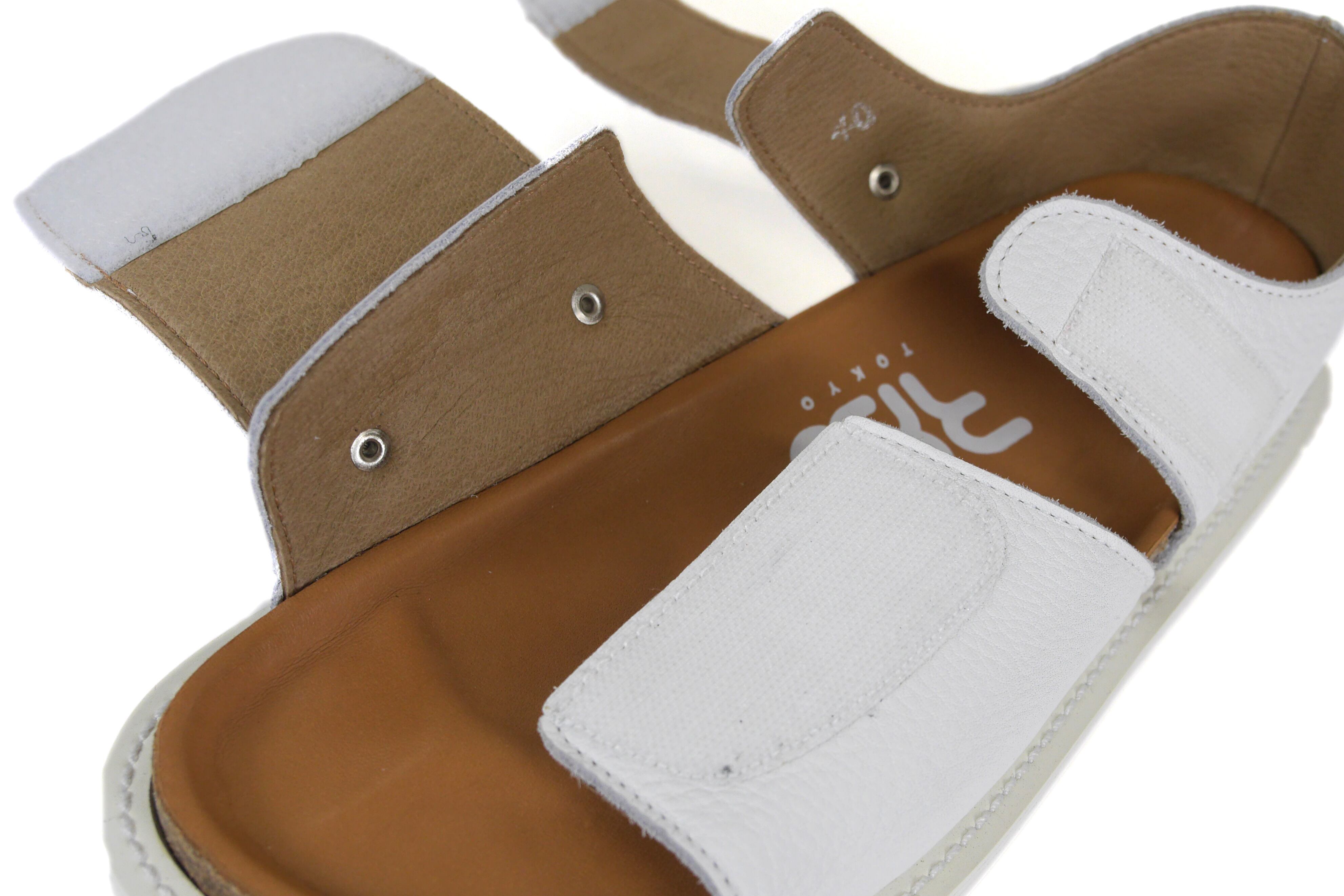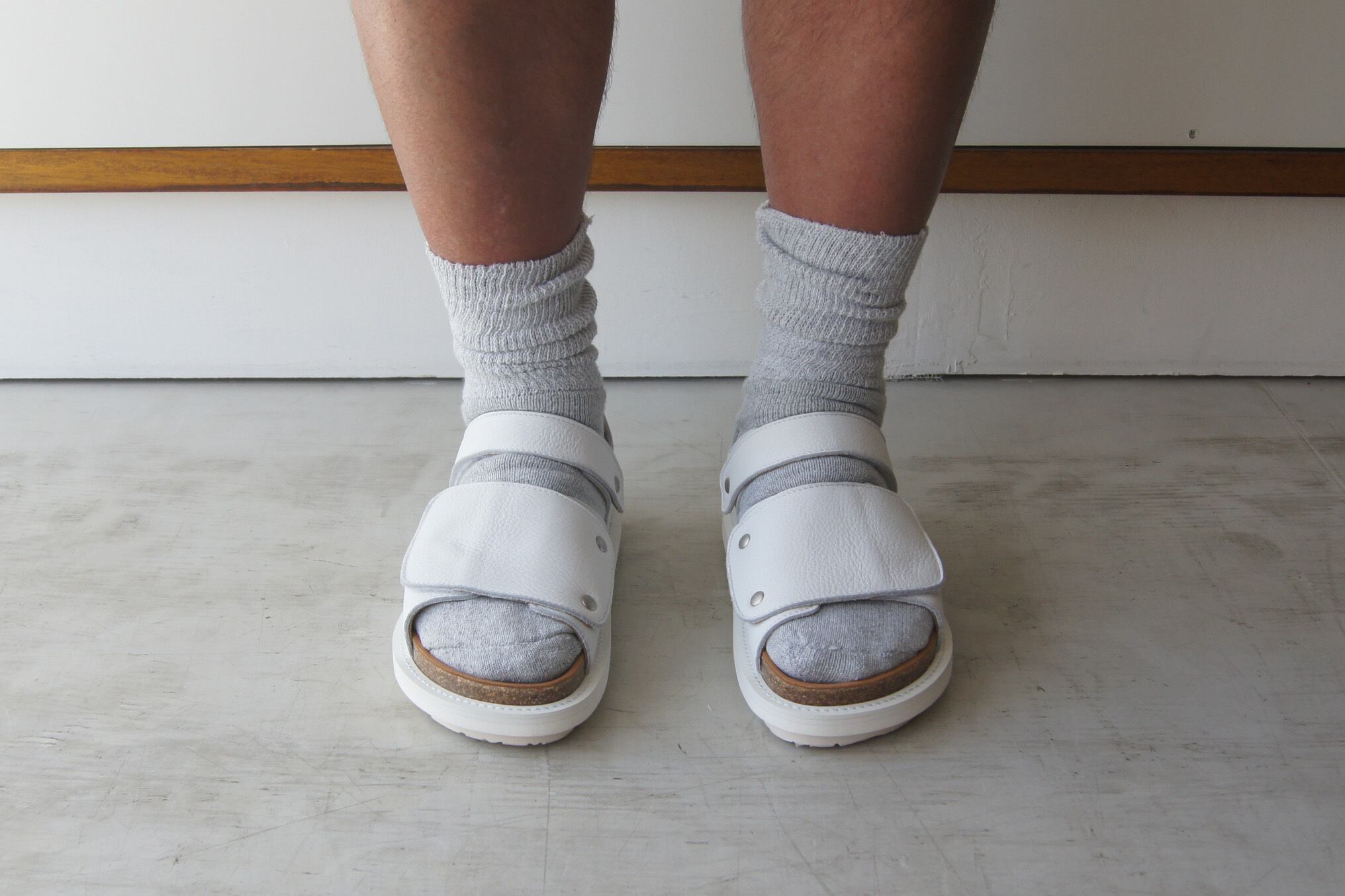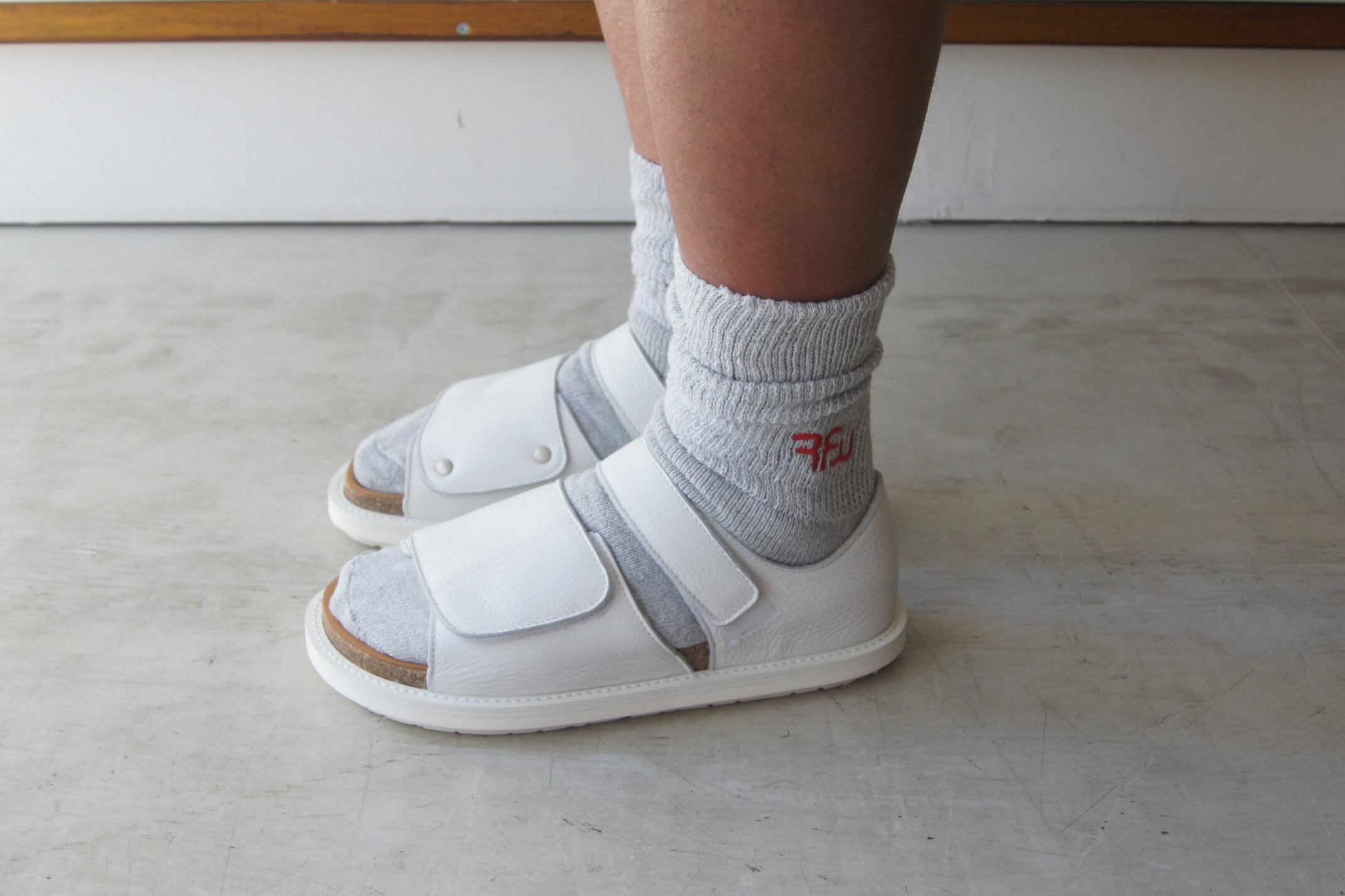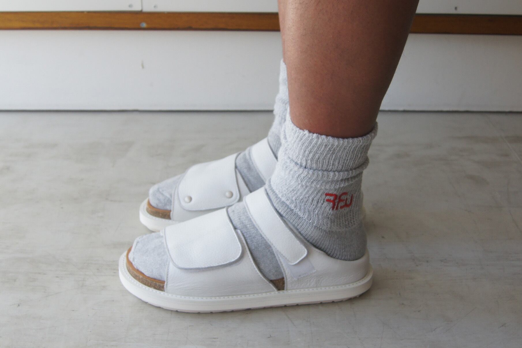 つま先に太いストラップと足首周りにもストラップでデザインされたPUFFIN 2 SSL。『PUFFIN』(パフィン)シリーズはRFWの定番サンダルでシーズンごとに素材やソールなどに改良を加え、履き心地にも定評のあるレザーサンダルになります。しっかりと足を保護するアッパーのデザインで年間を通してご着用いただけます。ストラップは全てベルクロで着脱しやすく微調整が可能です。またかかとには芯が入ってないので、かかとを潰してご着用いただくことも可能です。ソールは軽量で柔らかく、摩耗製に優れたVibram(ビブラム)ソールを使用しており、フットベッドもイタリア製の立体型のコルクソールを用いてます。アッパーは柔らかいソフトな牛革になります。細かいシュリンクがナチュラルな雰囲気を醸し出してます。厚みのある柔らかい革で芯が入ってなく、足を柔らかく包むような作りになります。