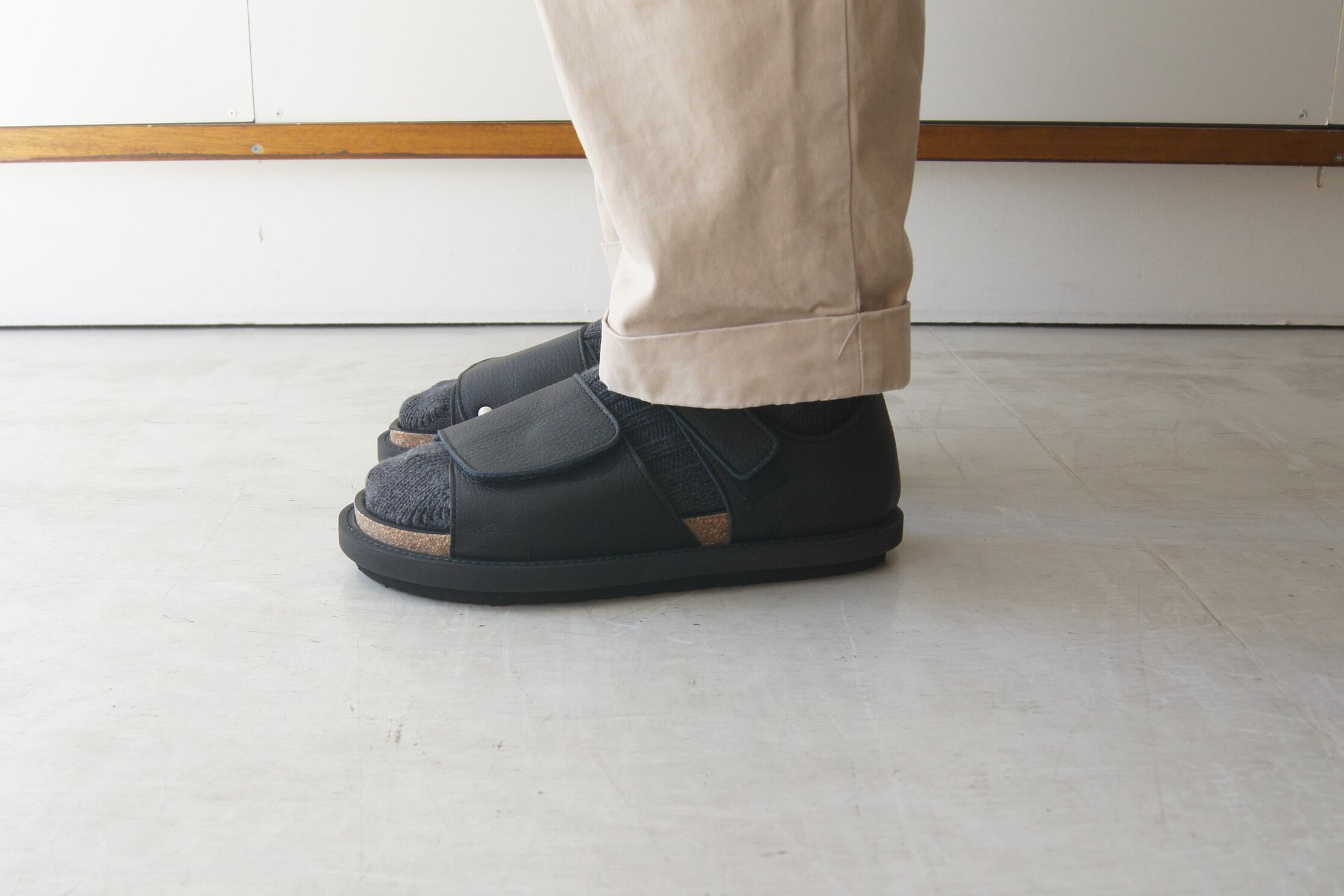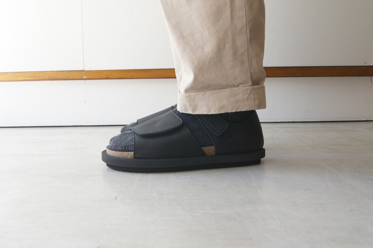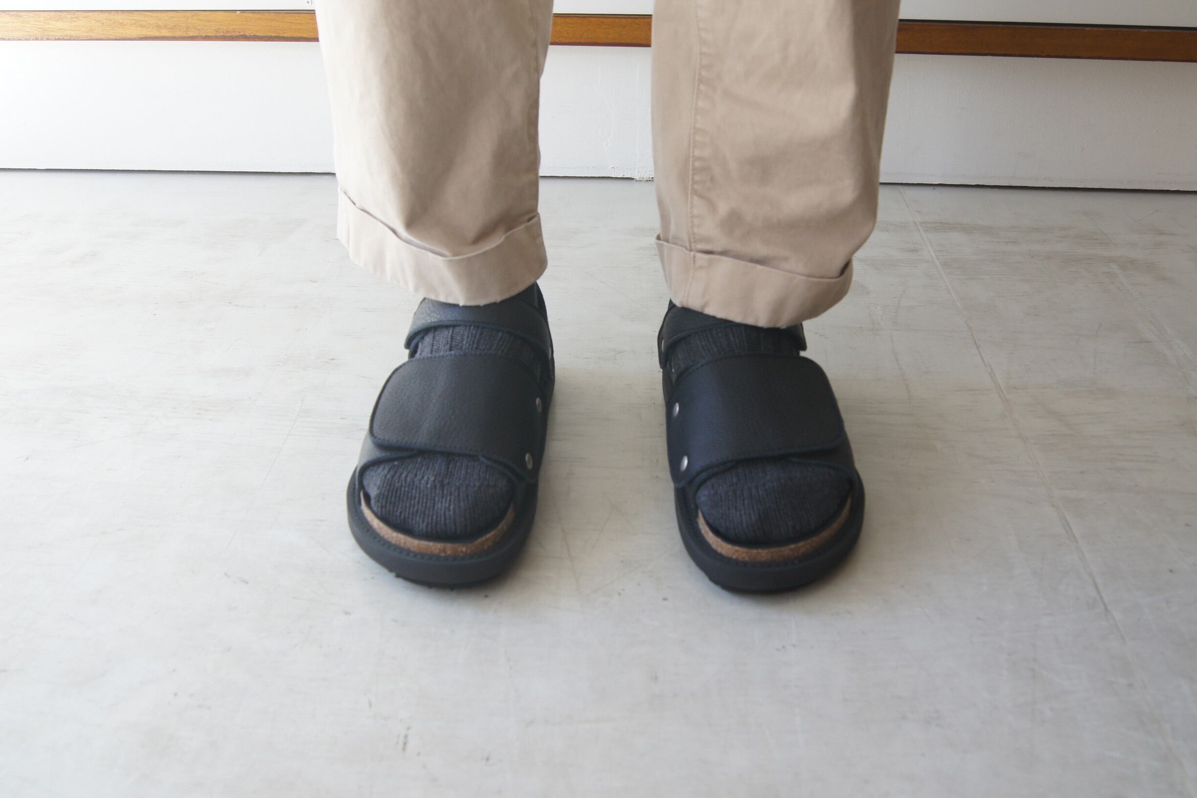 つま先に太いストラップと足首周りにもストラップでデザインされたPUFFIN 2 SSL。『PUFFIN』(パフィン)シリーズはRFWの定番サンダルでシーズンごとに素材やソールなどに改良を加え、履き心地にも定評のあるレザーサンダルになります。しっかりと足を保護するアッパーのデザインで年間を通してご着用いただけます。ストラップは全てベルクロで着脱しやすく微調整が可能です。またかかとには芯が入ってないので、かかとを潰してご着用いただくことも可能です。ソールは軽量で柔らかく、摩耗製に優れたVibram(ビブラム)ソールを使用しており、フットベッドもイタリア製の立体型のコルクソールを用いてます。アッパーは柔らかいソフトな牛革になります。細かいシュリンクがナチュラルな雰囲気を醸し出してます。厚みのある柔らかい革で芯が入ってなく、足を柔らかく包むような作りになります。