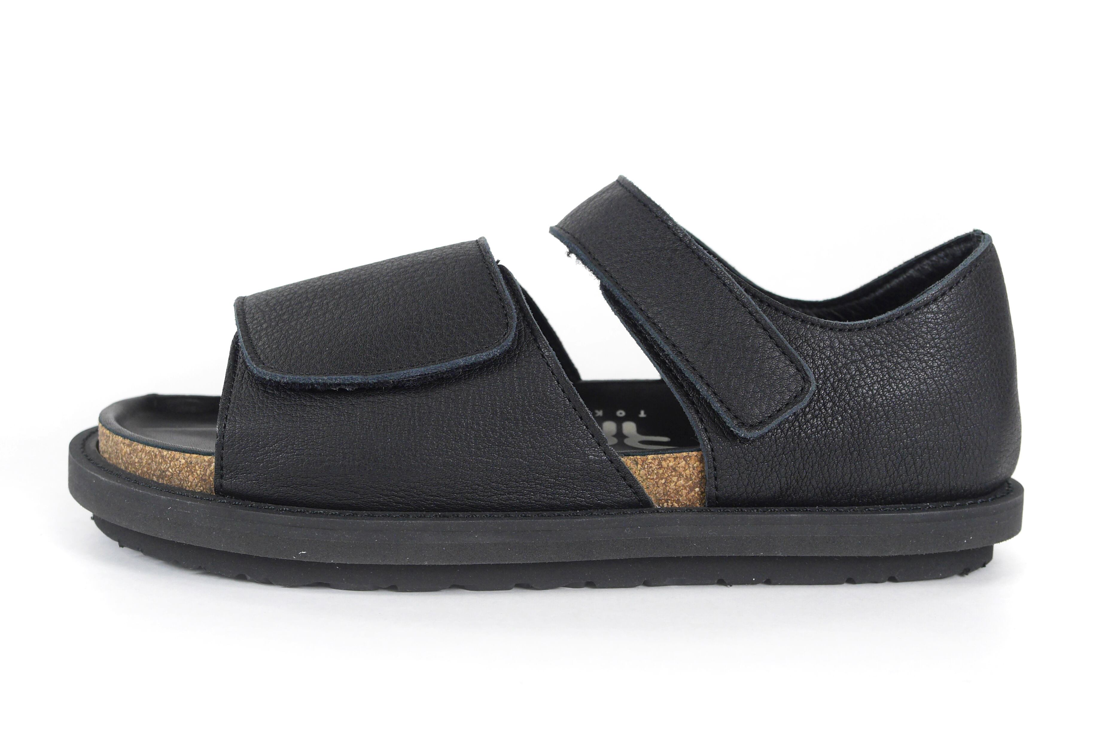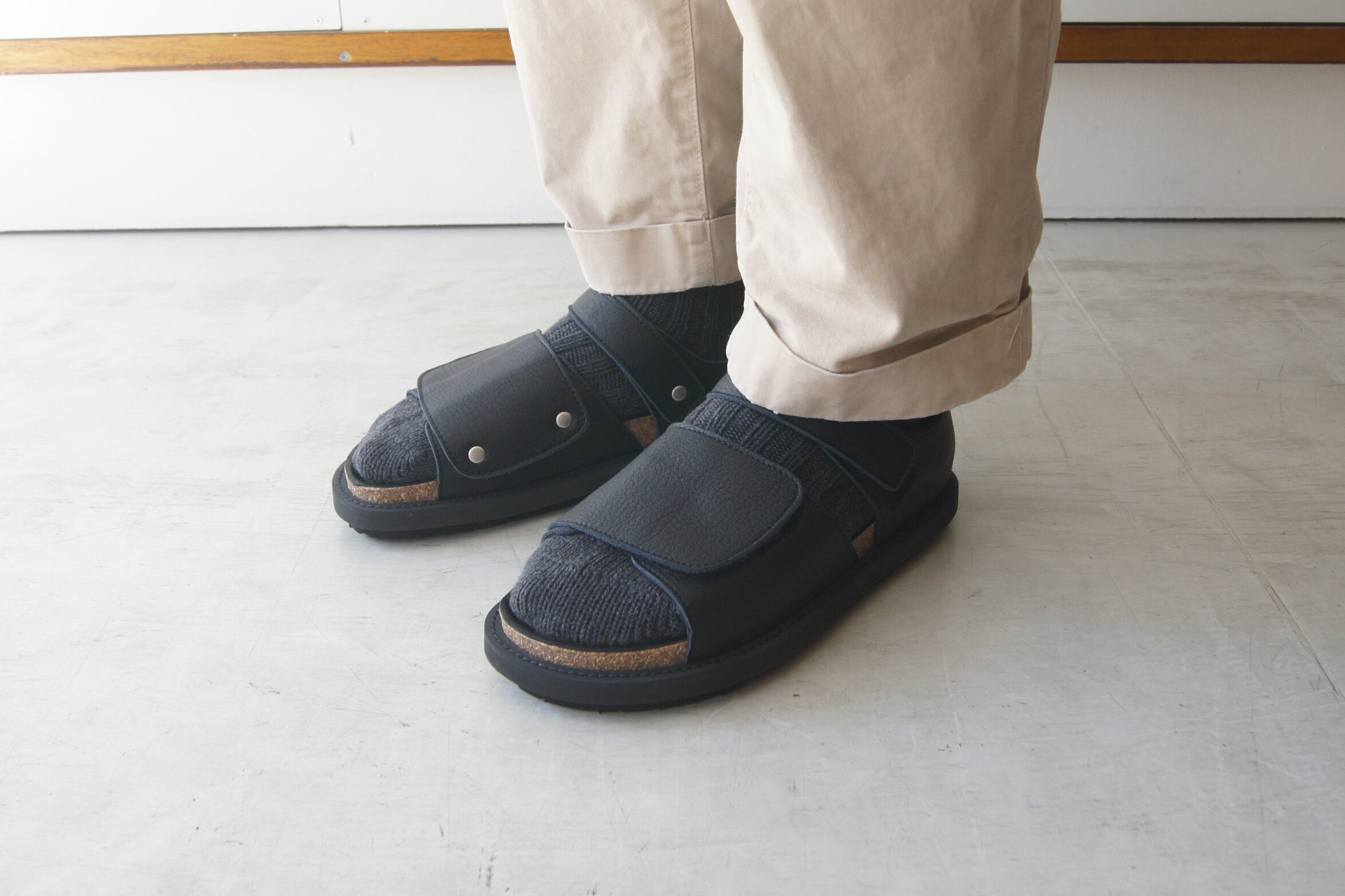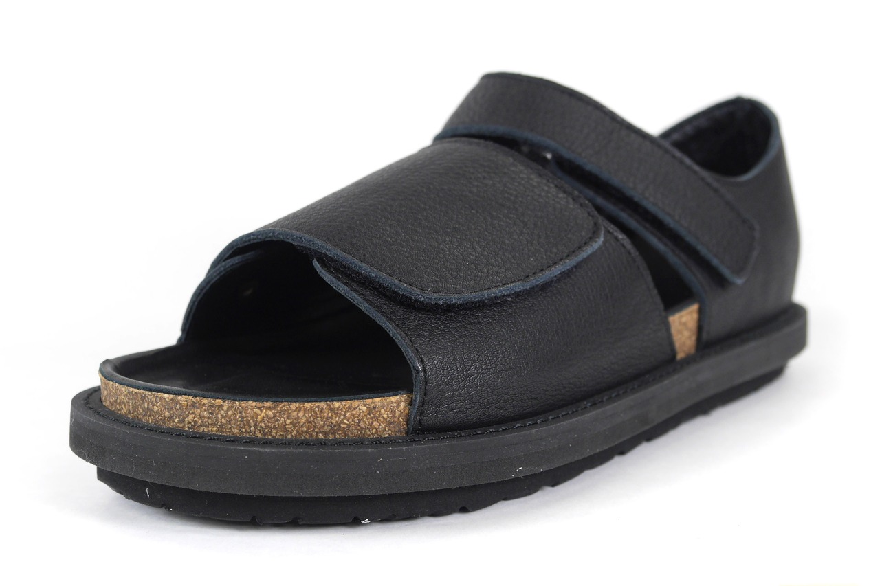 つま先に太いストラップと足首周りにもストラップでデザインされたPUFFIN 2 SSL。『PUFFIN』(パフィン)シリーズはRFWの定番サンダルでシーズンごとに素材やソールなどに改良を加え、履き心地にも定評のあるレザーサンダルになります。しっかりと足を保護するアッパーのデザインで年間を通してご着用いただけます。ストラップは全てベルクロで着脱しやすく微調整が可能です。またかかとには芯が入ってないので、かかとを潰してご着用いただくことも可能です。ソールは軽量で柔らかく、摩耗製に優れたVibram(ビブラム)ソールを使用しており、フットベッドもイタリア製の立体型のコルクソールを用いてます。アッパーは柔らかいソフトな牛革になります。細かいシュリンクがナチュラルな雰囲気を醸し出してます。厚みのある柔らかい革で芯が入ってなく、足を柔らかく包むような作りになります。