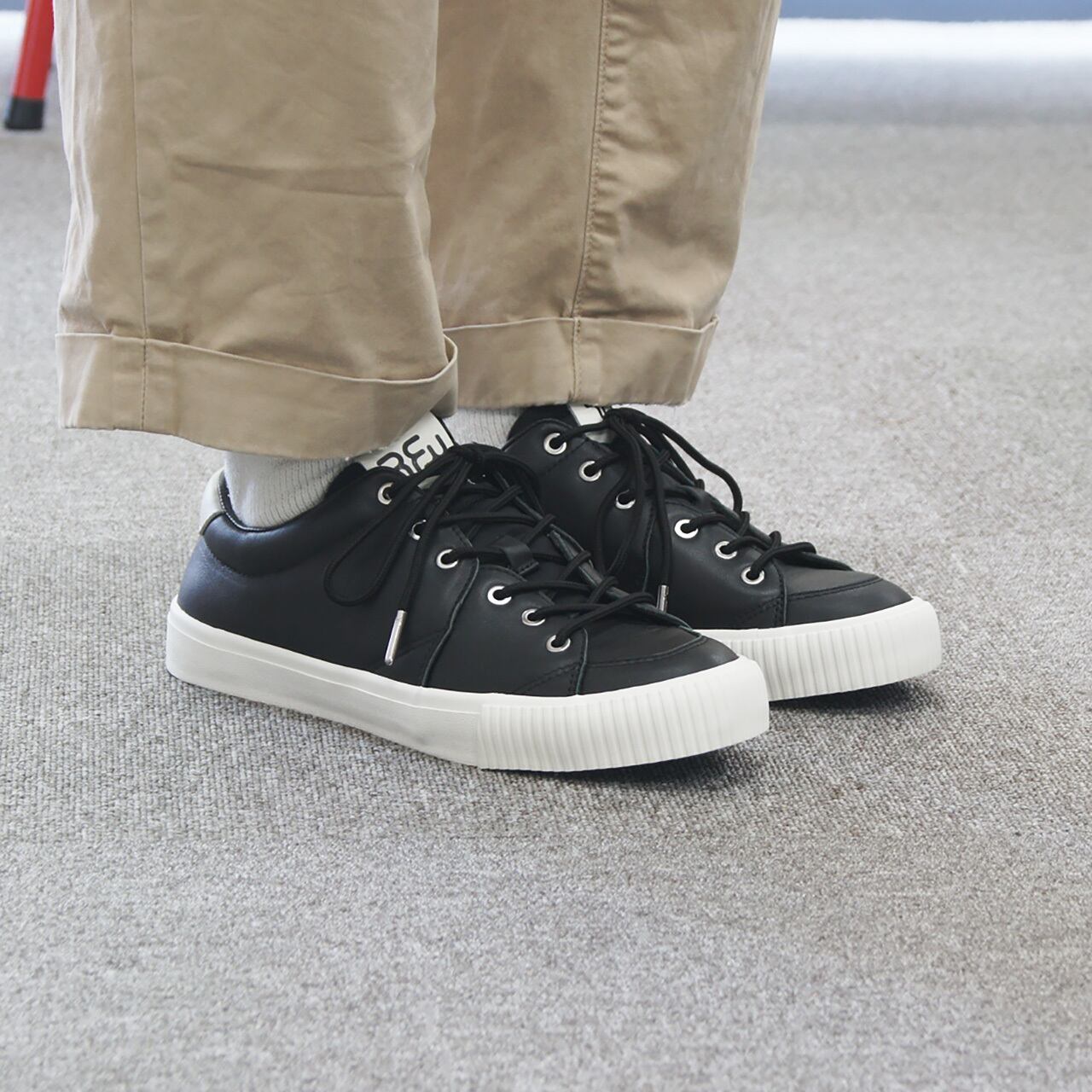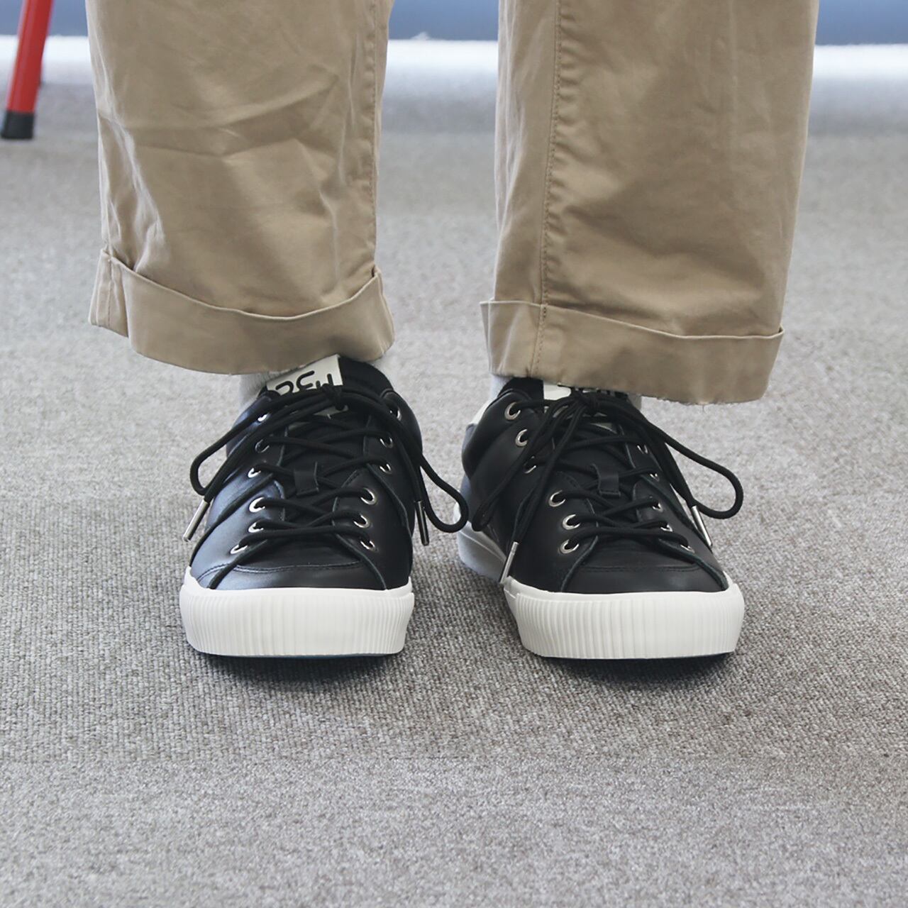 スタイリッシュなブラックカラーのソフトレザースニーカーは幅広いコーディネートに合わせやすく、普段使いから旅行まで活躍してくれます。